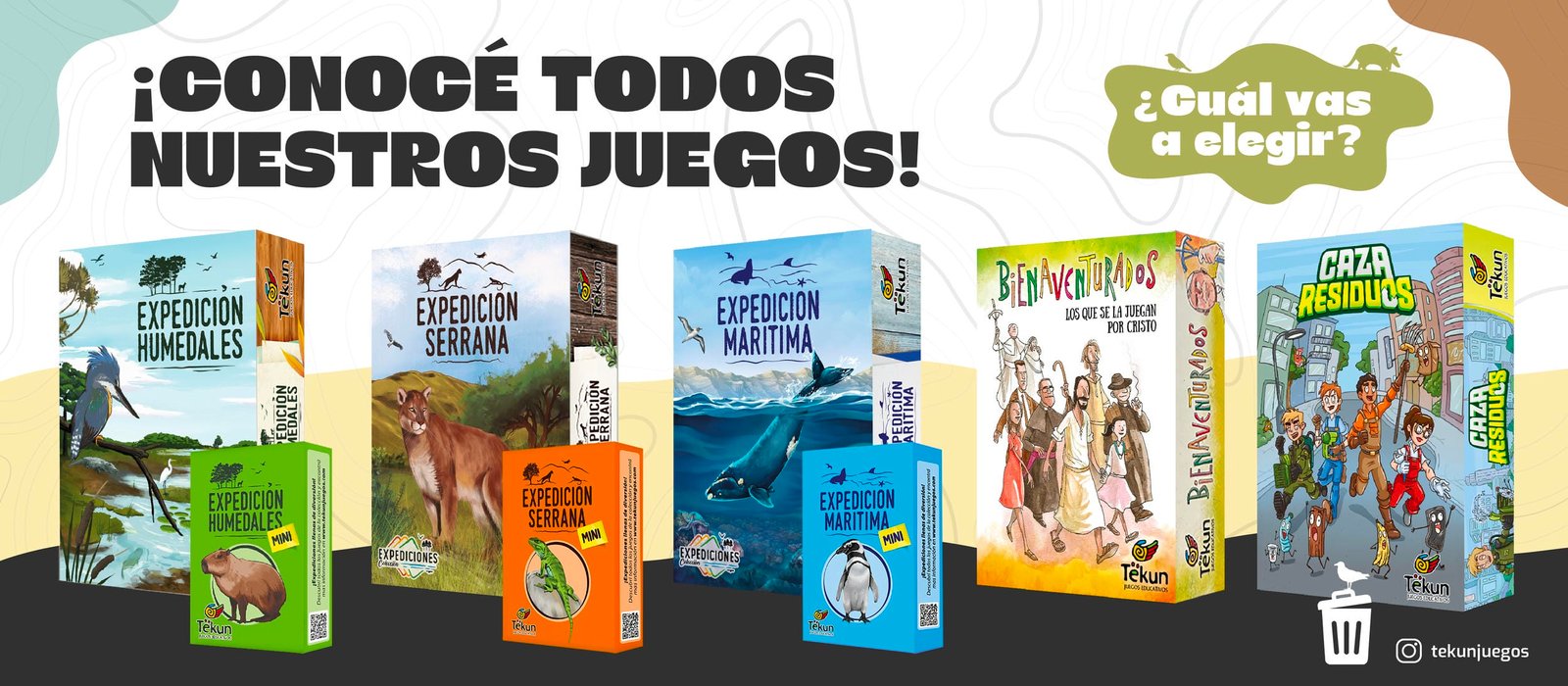 La Colección Expediciones está compuesta por los juegos Expedición Humedales, Expedición Serrana y Expedición Marítima, abarcando la biodiversidad de las ecorregiones de Argentina. También somos los creadores del juego educativo Bienaventurados.